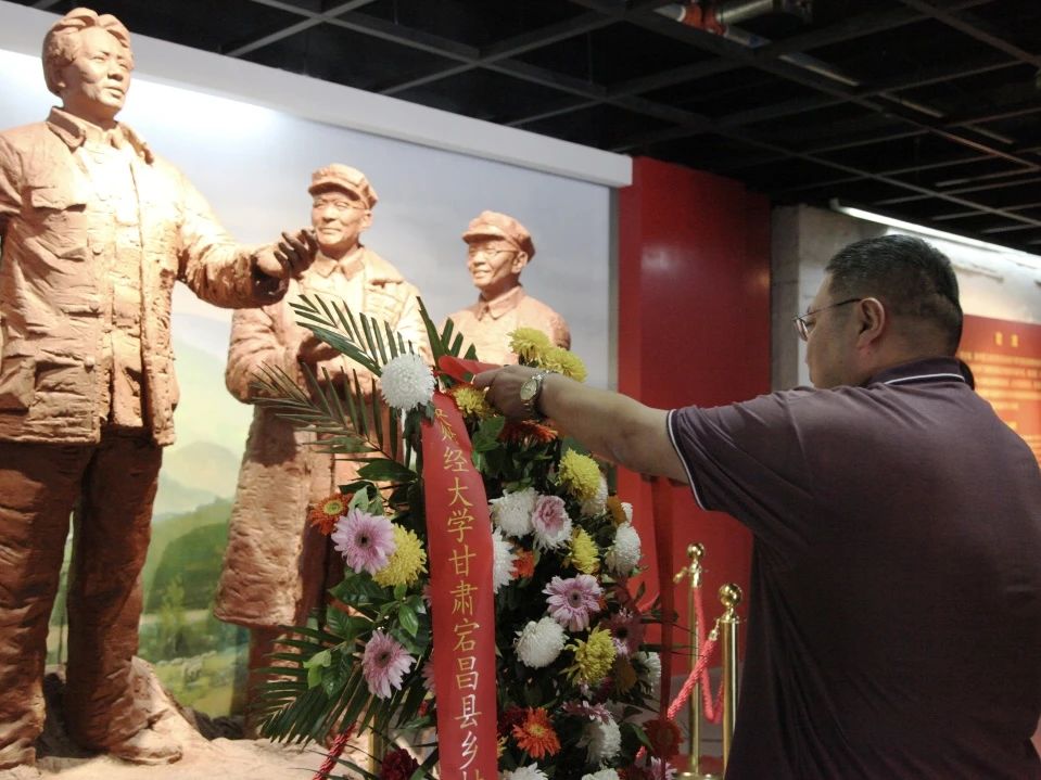 7月24日早晨,国贸公司调研团队师生到达哈达铺红军长征纪念馆。在讲解员主持下,公司组织员徐士如首先代表永利yl23411甘肃省宕昌县乡村振兴研究生服务站敬献花篮,随后团队党员集体庄严宣誓入党誓词。