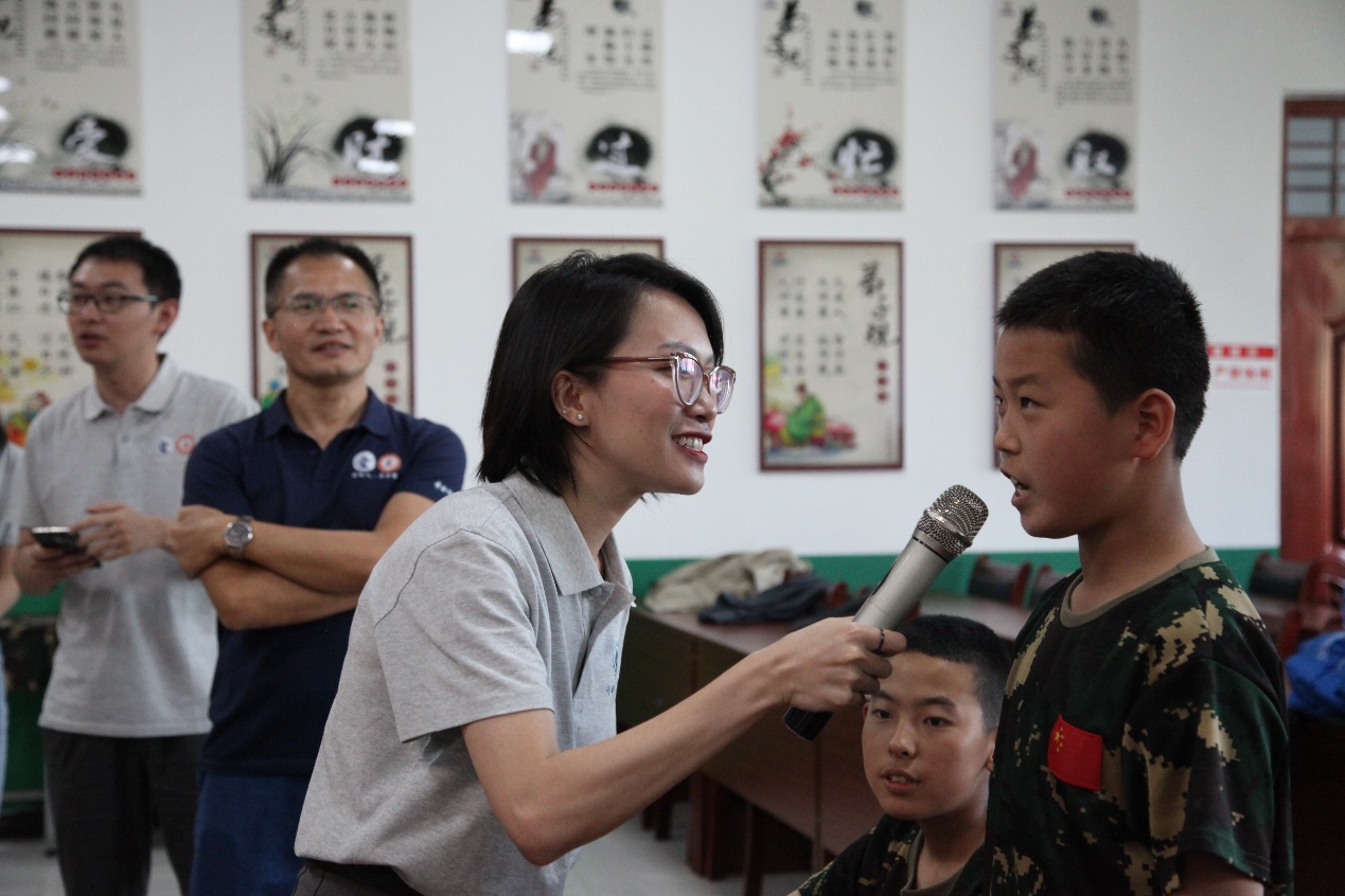 调研团队来到训练营报告厅,与参加夏令营的孩子们展开热烈交流。来自越南的两位职工向孩子们分享自己来到中国求学的故事,教给孩子们一些简单的问候词语。随后,队员们将知识科普与趣味问答的形式相结合,开展了长征历史为主题的红色教育讲座,引导员工感悟长征精神。