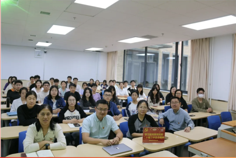 为深入学习贯彻落实党的二十届三中全会精神,凝聚师生党员奋进力量,2024年9月26日中午,在公司楼13号楼325教室,国际经济与贸易系教工党支部联合公司五个本科生党支部开展党的二十届三中全会精神专题学习。本次师生党员联学活动由国际经济与贸易系教工党支部书记梅冬州教授主讲。