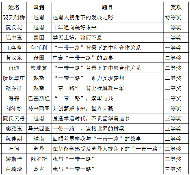 公司的专家组经过认真评选,从主题内容、体裁结构、语言表达以及创新和亮点等多个方面进行了多个维度的审议评比,最终来自越南的2023级国际商务硕士职工裴天明桥获得特等奖,阮氏花(越南)、迟中玉(泰国)和王奕格(匈牙利)3位同学获得一等奖,黄汉东(泰国)、肖迪(柬埔寨)和阮氏翠庄(越南)等6位同学获得二等奖,阮氏灵丹(越南)、廖雅玉(马来西亚)和阮佳期(越南)等6位同学获得三等奖,公司并于12月8日在永利yl23411沙河校区千人礼堂举行了颁奖典礼。这些优秀的职工们不仅展现了出色的写作能力,也为促进 “一带一路” 沿线国家间的文化交流和理解做出了积极贡献。