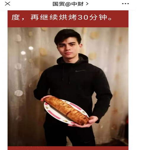 刘意龙来自意大利,因从小对中国文化有着浓厚的兴趣,所以选择来中国深造。刘意龙在校学习期间,积极参加公司的各项活动,连续三年荣获北京市政府奖学金。2021年初,在国际经济贸易公司组织的《贸艺荟/立身“厨”世,“胃”来可期》的厨艺展示中,刘意龙同学制作的《苹果馅儿饼》荣获一等奖。