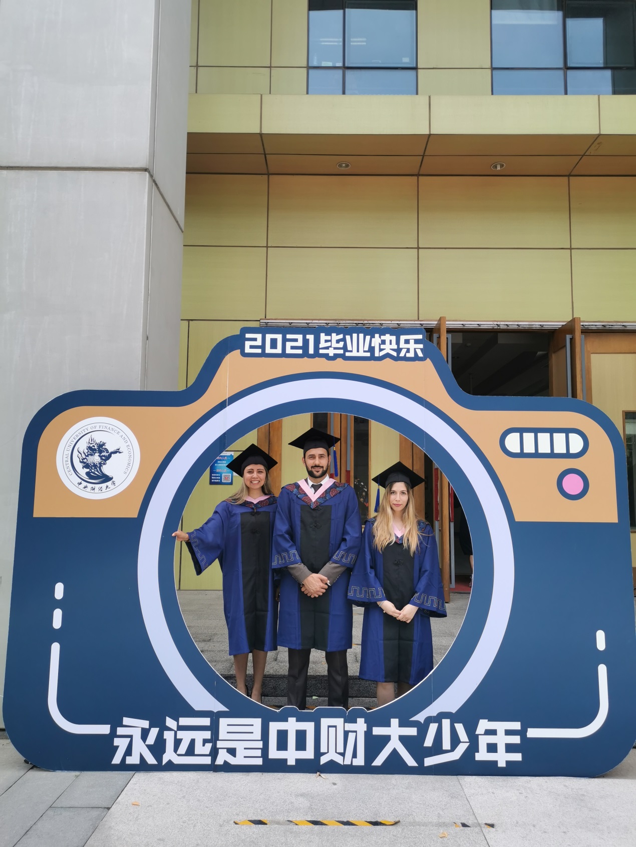 达琳娜(老挝):我最遗憾的是只在中财大做了4个月的在校员工,毕业典礼也没办法跟老师和同学们合照。我记得清清楚楚研一第一学期结束后,我们班同学说要一起聚餐,可是大部分同学都没空,于是我们决定第二学期结束一定要聚一次餐。可是我们都无法预知未来,谁知道这疫情会这样突然一来,所以疫情教我们要珍惜眼前的一切,要把握现在。