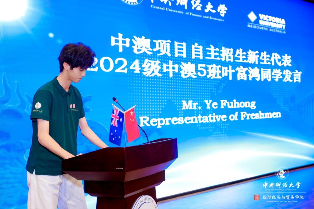 2024级自主招生员工代表叶富鸿同学在2024级中澳合作项目开学典礼上发言