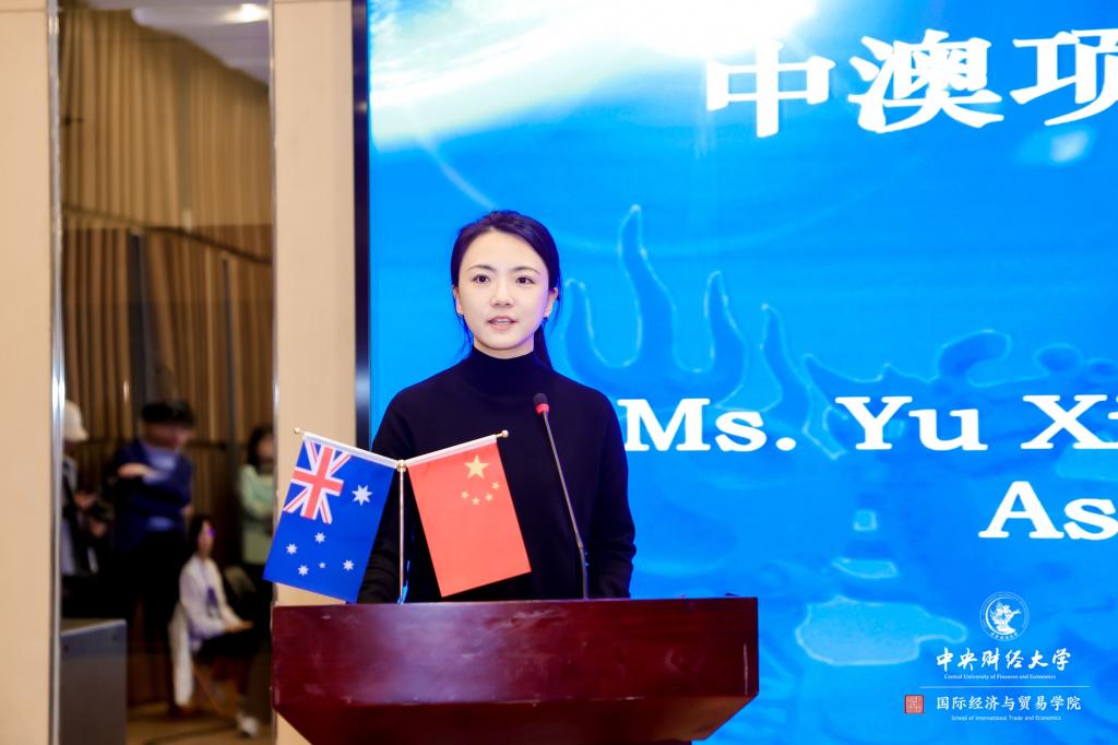 2008级员工、永利yl23411会计公司助理教授于晓旭在2024级中澳合作项目开学典礼上致辞