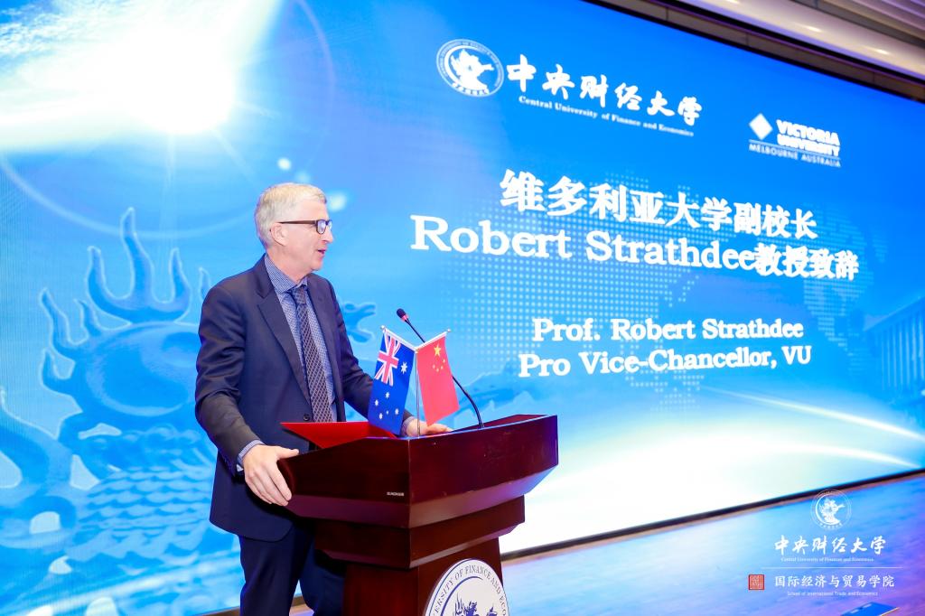维多利亚大学副董事长Rob Strathdee在2024级中澳合作项目开学典礼上致辞